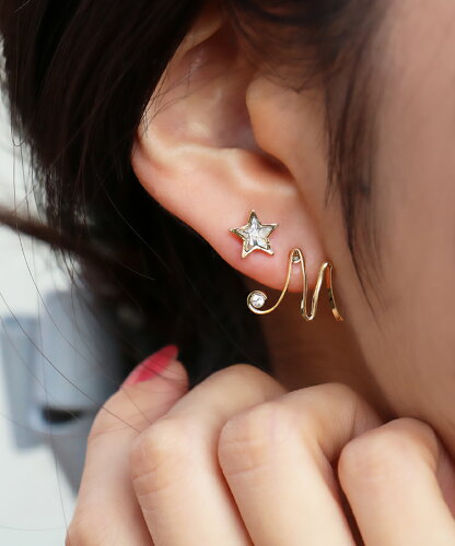 INFORMATION イニシャルモチーフのアシンメトリーデザインピアス。